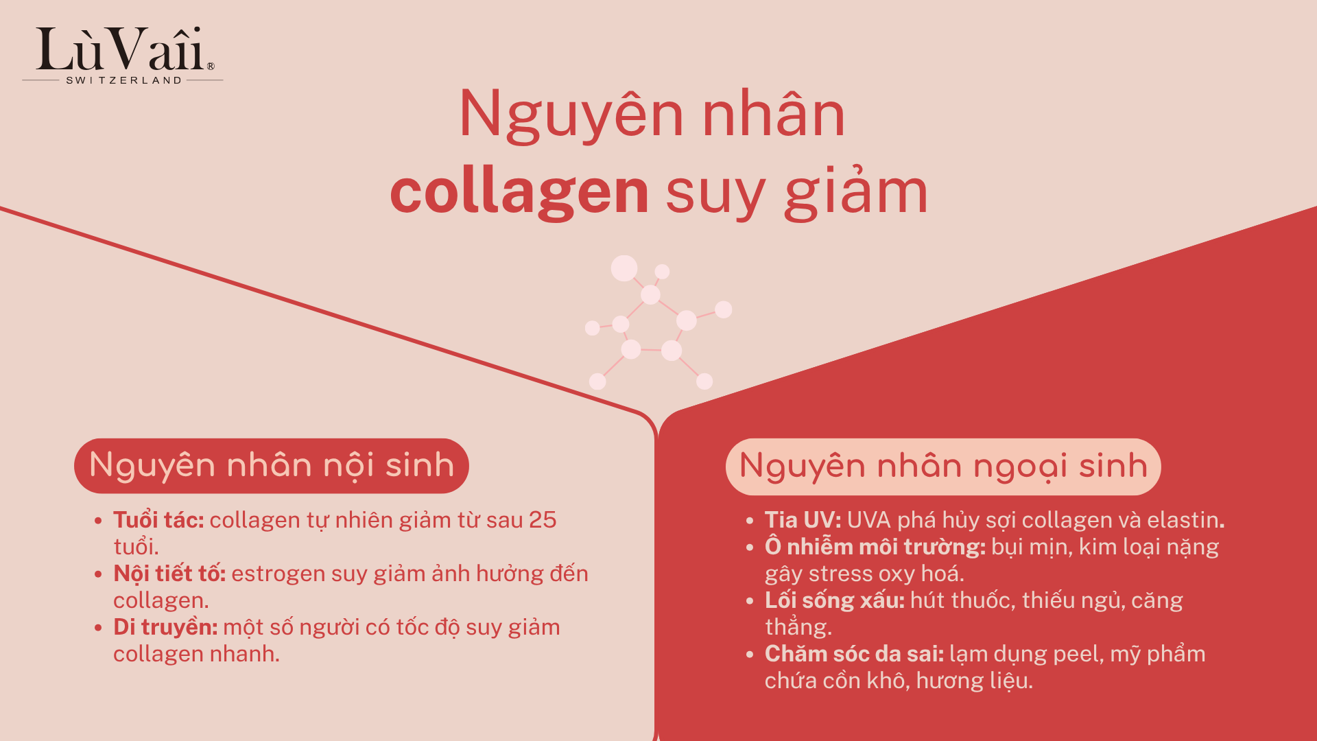 - Tuổi tác: collagen tự nhiên giảm từ sau 25 tuổi.